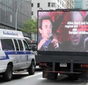 SIRP DİYASPORASI NEW YORK’TA KOSOVA VE BAŞBAKANI KURTİ ALEYHİNE BİLBOARDLARI DOLAŞTIRIYOR