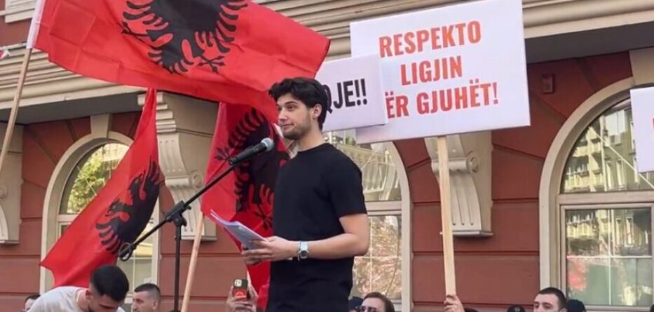 “2026 yılında öğrencilerin kendi dilleri için sokağa çıkmaması gerekiyordu, ama işte buradayız. Öğrenci olmadan önce, profesyonel olmadan önce biz Arnavutuz. Dilimize dokunulduğunda, aslında varlığımızın temeline dokunulmuş olur. Arnavutça, nasıl yaşadığımızın, nasıl konuştuğumuzun ve bugüne nasıl geldiğimizin ifadesidir. Öğrenci olmadan önce, profesyonel olmadan önce biz Arnavutuz,” dedi.